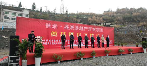 2021年1月26日上午,由乐竞体育页面官方网站-乐竞(中国)承建的长乐▪星辰住宅项目奠基暨开工仪式在项目现场热烈举行。湖北省宜昌市五峰土家族自治县住房和城乡建设局副局长陈白华、县质量安全监督站站长邓简涛、乐竞体育页面官方网站-乐竞(中国)五峰长乐▪星辰项目经理王国云,项目参建各方及新闻媒体共40余人出席。宜昌市长乐城市建设投资开发有限责任公司总经理刘鹏主持。